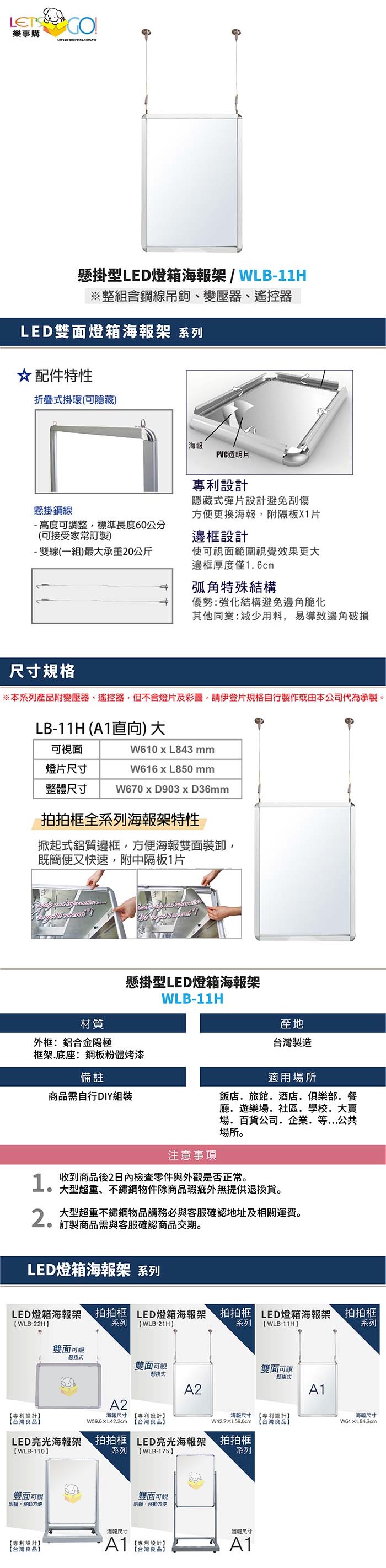 懸掛型LED燈箱海報架 / WLB-11H