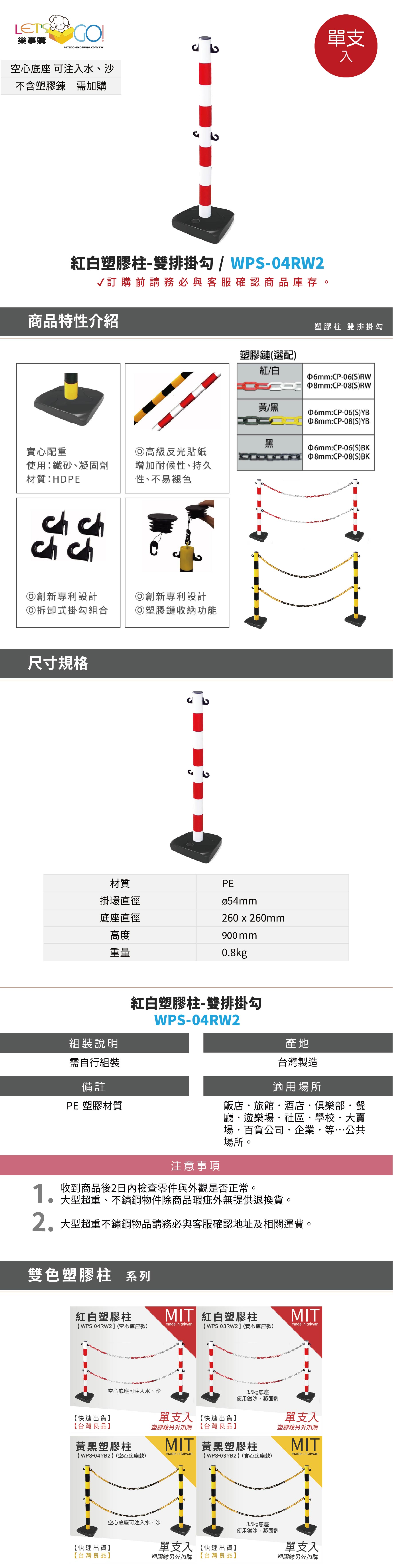 紅白塑膠柱-雙排掛勾 / WPS-04RW2