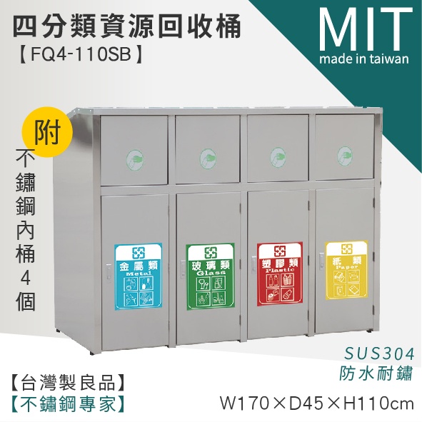 不鏽鋼四分類垃圾桶 / FQ4-110SB