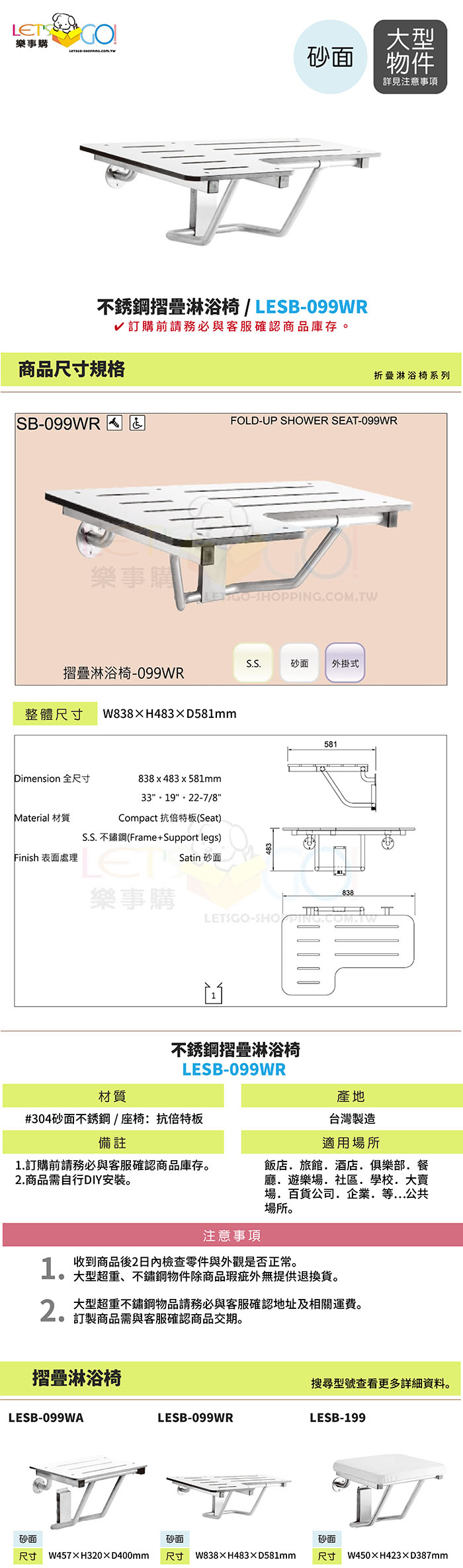 折疊不銹鋼淋浴椅 / LESB-099WR
