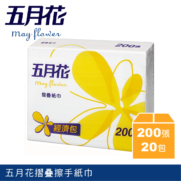 五月花摺疊擦手紙巾 200張/20包 (4000抽)