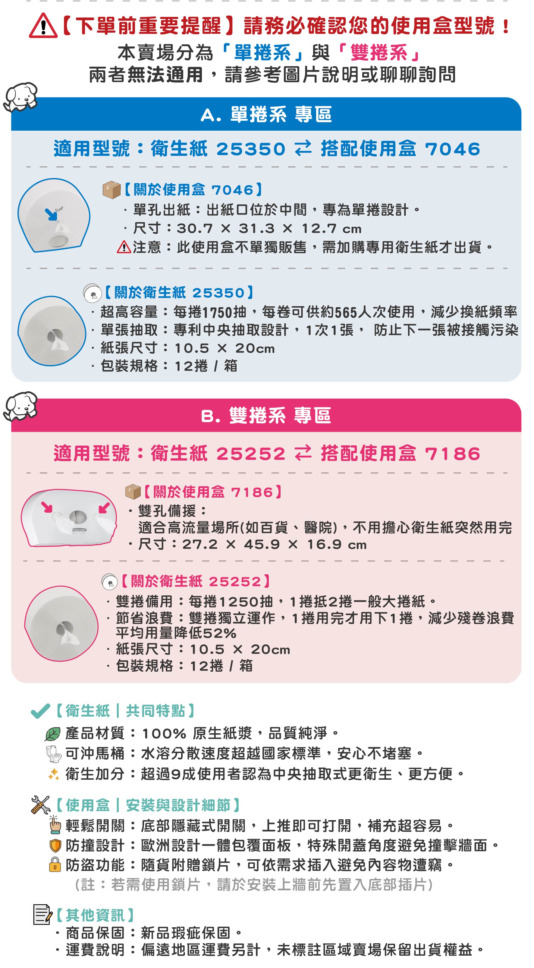 衛生紙品系列不同規格 無法提供合併打包 請分拆訂單訂購
