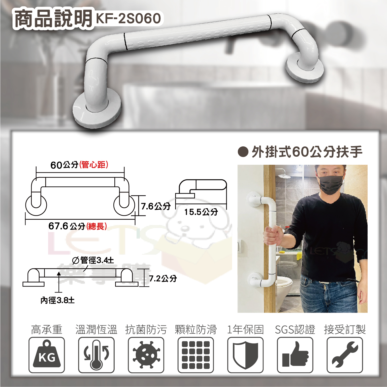 60公分偏置型(外掛式)防滑扶手 / KF-2S060
