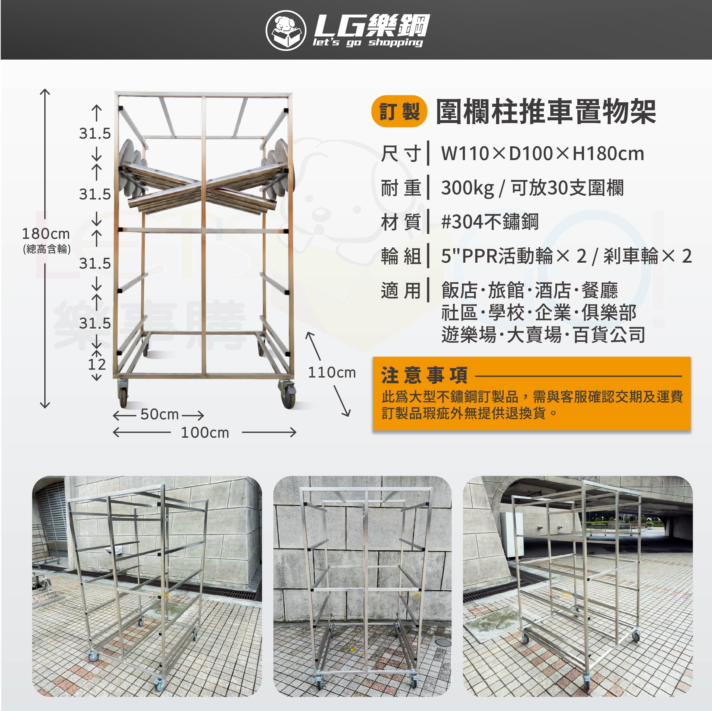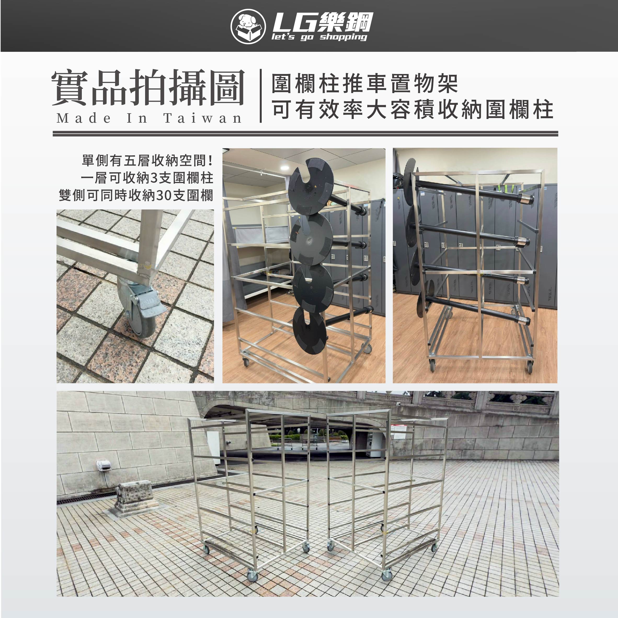 單台推車雙側可同時收納30支圍欄 !